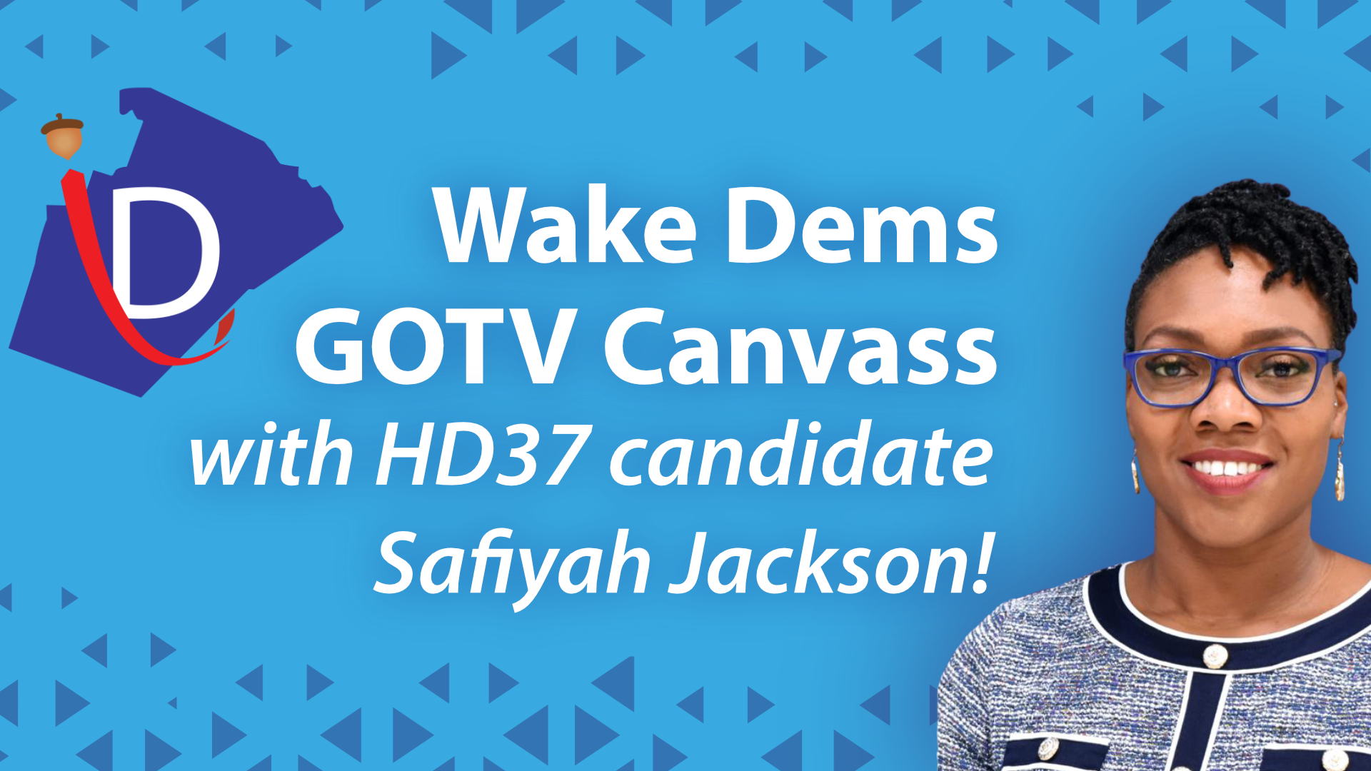 Join Wake Dems and HD37 candidate Safiyah Jackson for a Get Out The Vote Canvass in Raleigh!